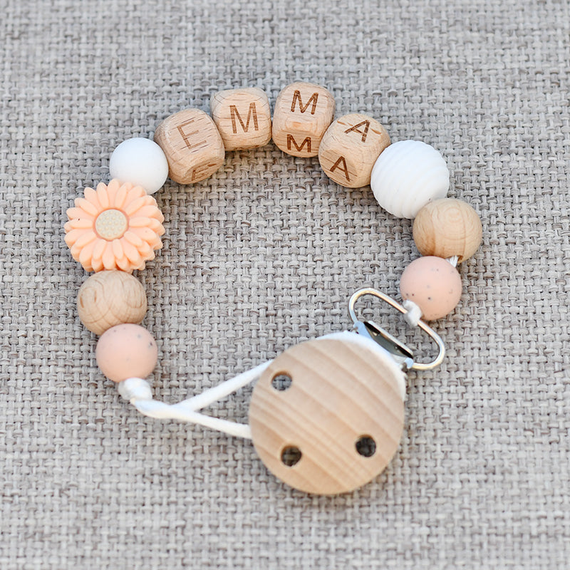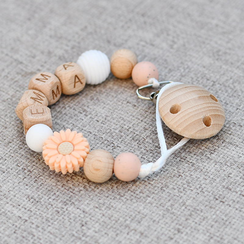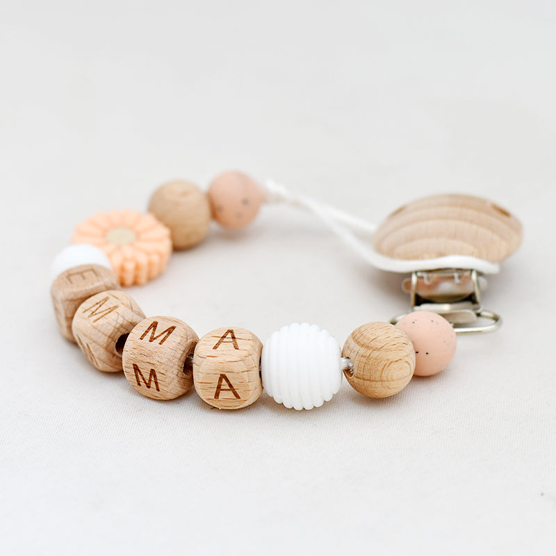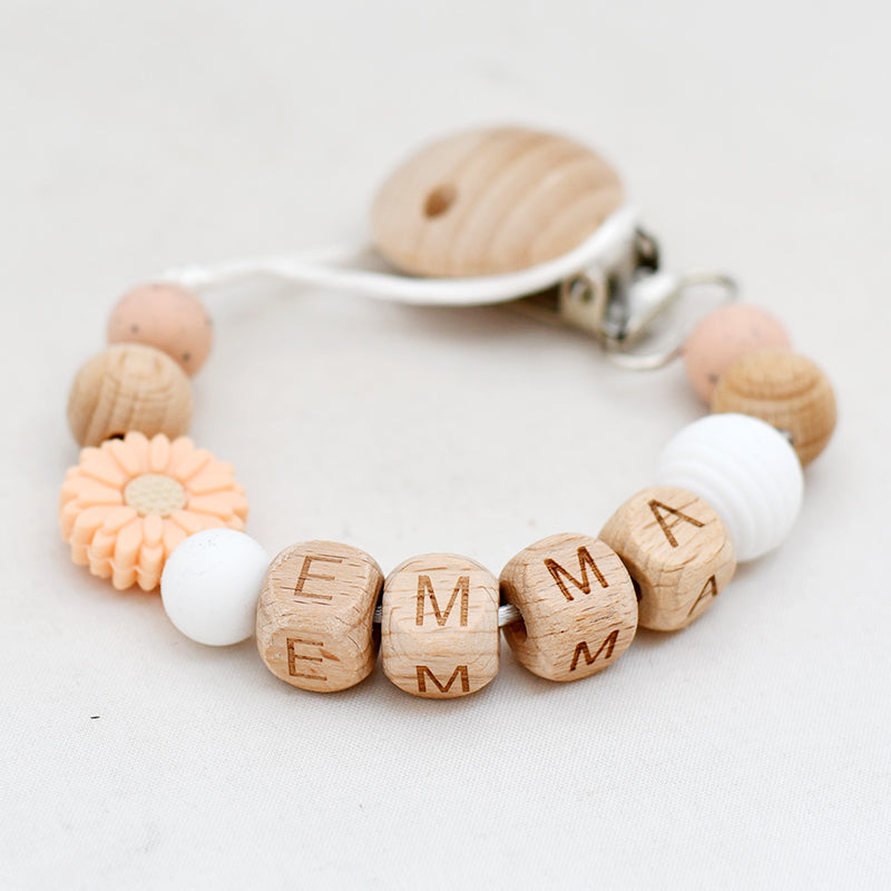 Een speenkoord met naam is dé ideale oplossing om het speentje altijd binnen handbereik te houden en voorkomt dat het op de grond valt en kwijt raakt. Handgemaakt, stijlvol én veilig voor de baby!